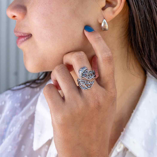 2. Vintage Silver-Toned Double Layer Adjustable Ring