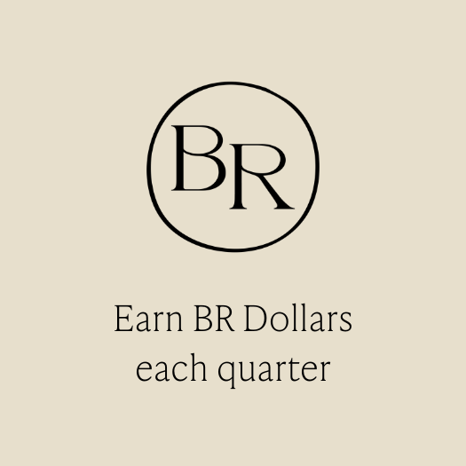 BR Dollars are our way of giving back. They’re store credit you earn just by shopping with us—sent out quarterly based on how much you spend. No need to keep tabs—we’ve got it covered.