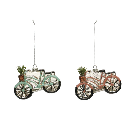 Hand-Painted Glass Bicycle Ornament w/ Glitter, 2 Colors